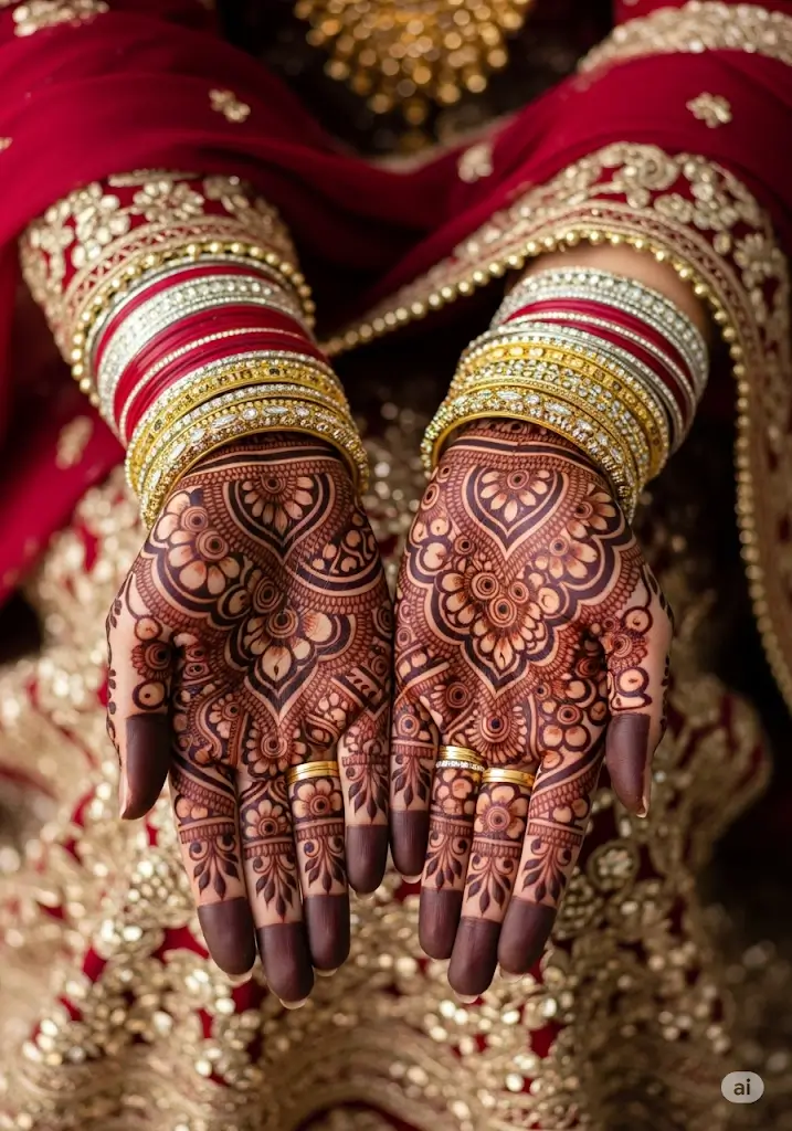 ✔ Bridal Mehndi : Dulhan ke liye, hum intehayi detail wale, traditional designs banate hain jo haathon aur paaon, dono ko cover karte hain.