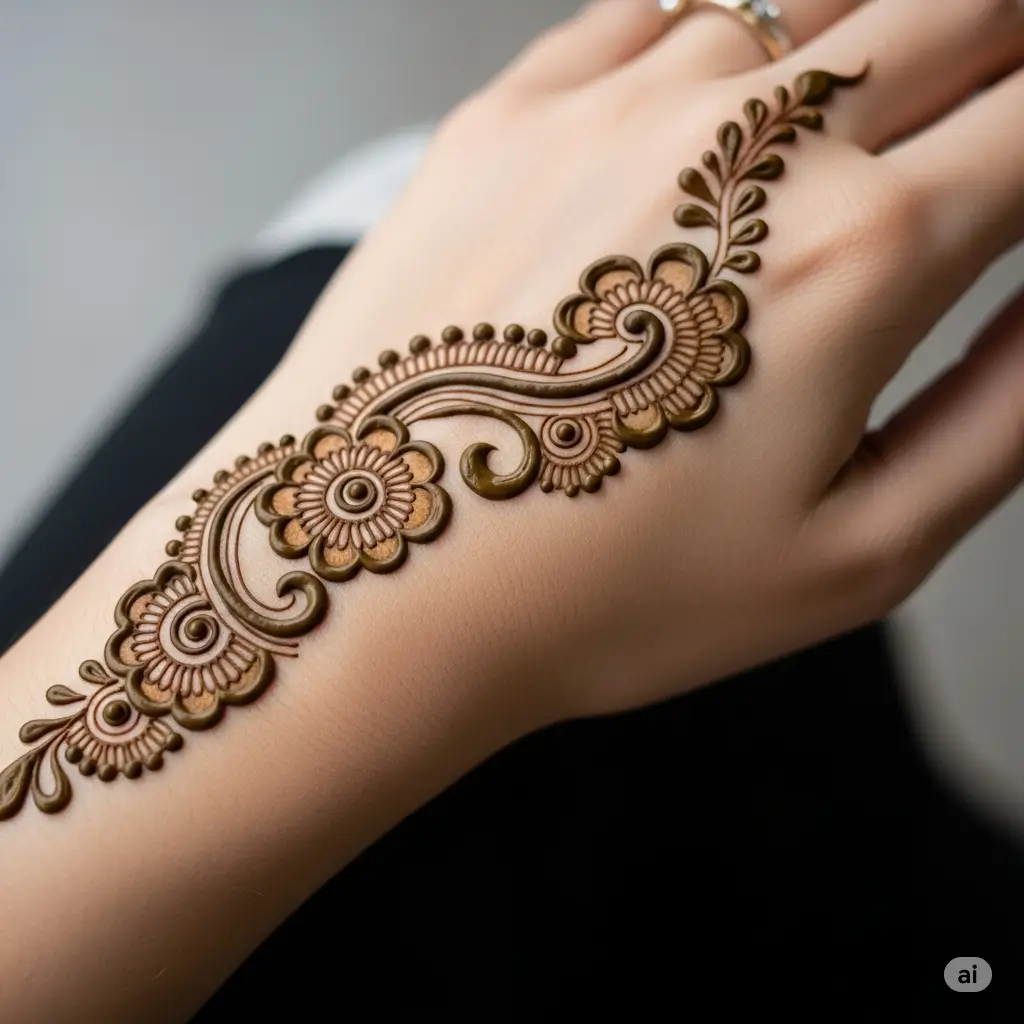✔ Arabic Mehndi : Bold lines aur floral patterns ke saath, yeh design modern aur elegant lagta hai.